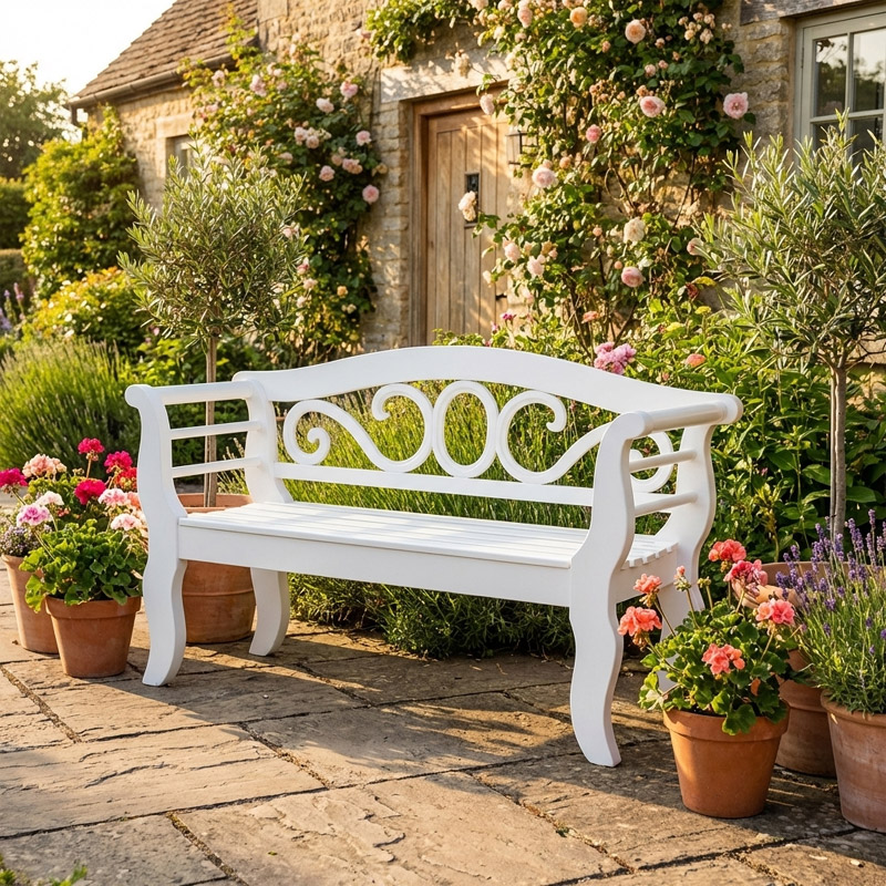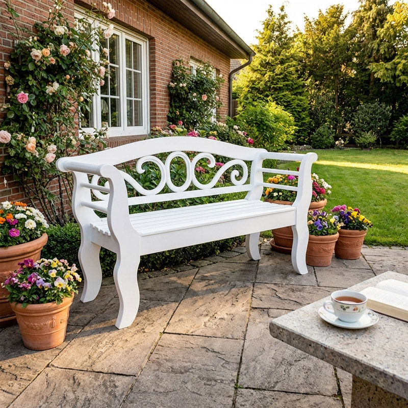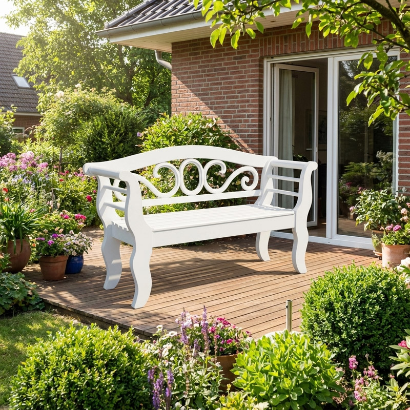 Gartenbank wetterfest Holz mit Echtholzschnitzerei